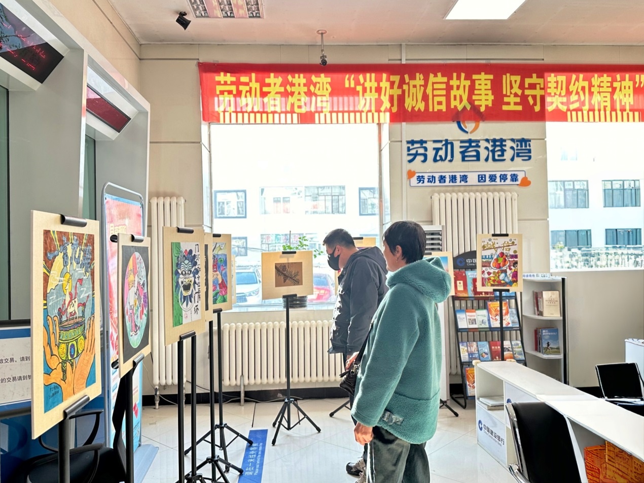 在建设银行大庆分行肇州支行的“劳动者港湾”,一处艺术长廊格外引人注目。这里展示了由大庆市摄影家协会、卡乐现代美术精心提供的以诚信故事、契约精神为主题的摄影书画作品。一幅幅精美的作品,不仅展现了艺术的魅力,更传递着诚信与契约的价值内涵。大庆市大学生普法志愿者联盟的成员们热情地为参观的客户和员工进行讲解,他们详细介绍了作品背后的法治寓意,让参观者在欣赏艺术之美的同时,感受到诚信文化的千年传承。通过这种法律与艺术双维度的渗透,将抽象的诚信和契约精神具象化,使大家更直观地理解和接受这些重要的价值观。